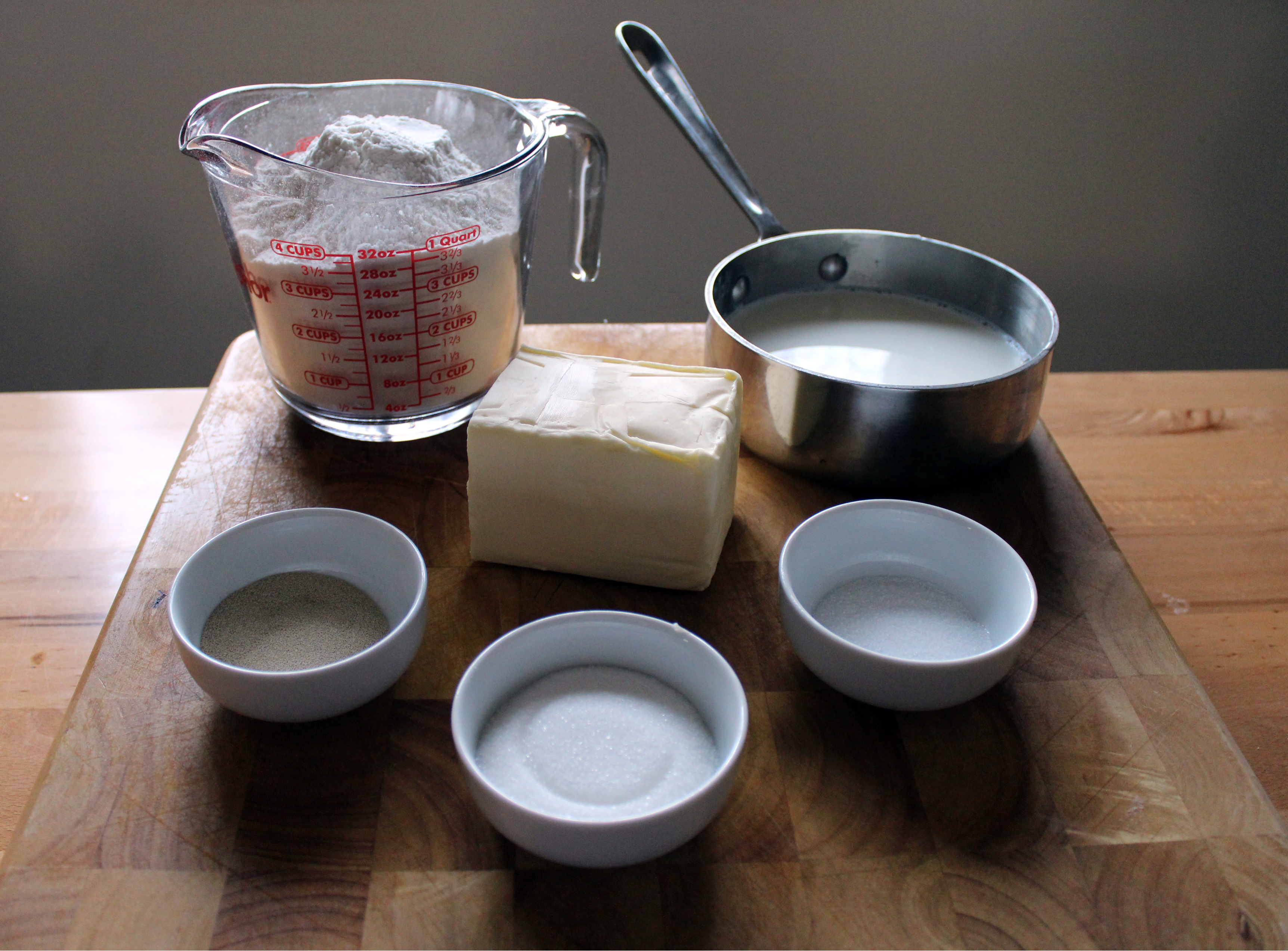 a cook’s croissant is a test of his technique. the ingredients are simple and the recipe leaves little room for spontaneity. an excellent croissant is largely the result of patience: don’t overwork the dough, don’t rush resting periods, have soft hands. the girl and i last had croissants in January at a small bakery in The Mission District, called Tartine. that was almost 6 months ago. it’s been too long. so here is a recipe to help sate the fix. the ingredients are simple; the instructions are, too. don’t rush.
