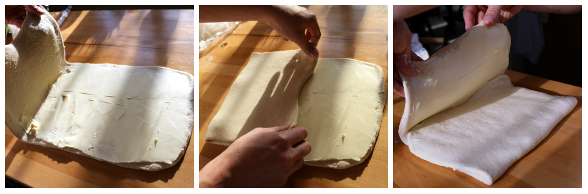 fold the dough as shown below. notice that there are now alternating layers of dough > butter > dough > butter.