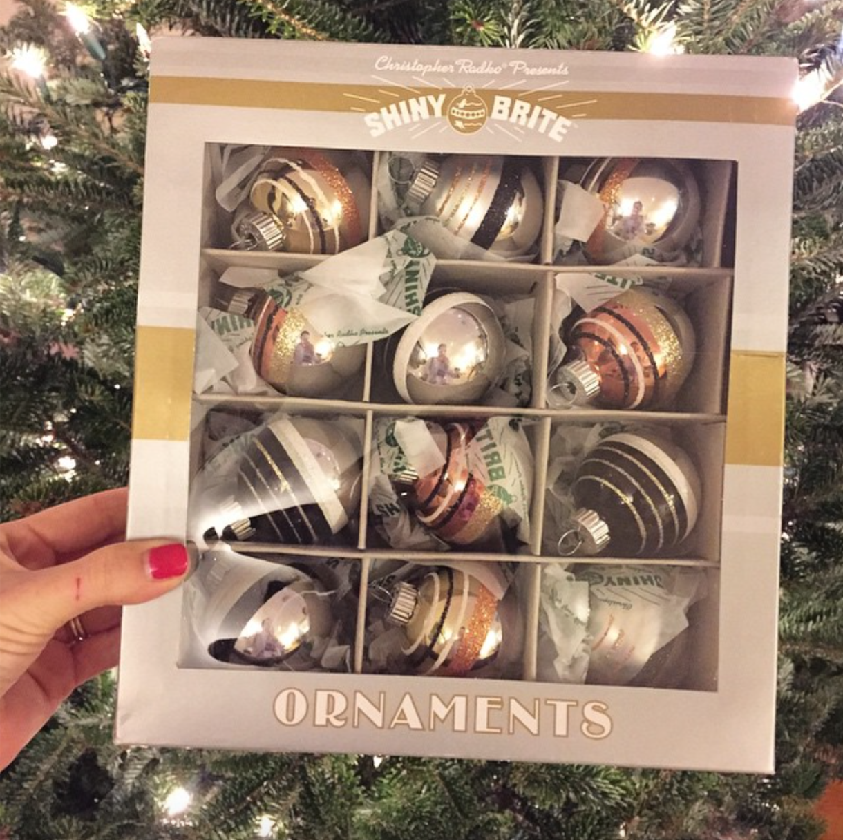 check out these perfectly perfect, brand new shiny brite recreations! it was like the heavens opened up when i found these little guys. i just love them. my mom has tons of the originals, wwii era, that belonged to my great-grand mother. these new ones are made from the same molds, and in the same style as the old ones – just with a modern color twist.