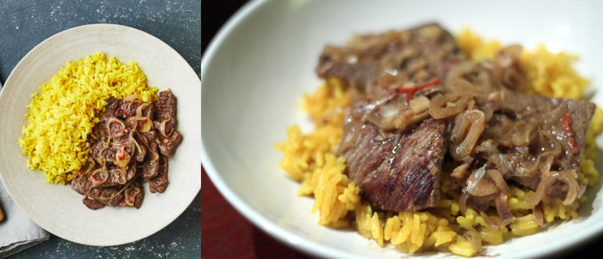 we loved every bit of this meal — and loved how fragrant it made our kitchen! sauteed shallots, garlic and ginger.. throw in the sliced beef, add some light coconut milk, a cinnamon stick, lemon grass, thai chili pepper. oh my gosh, i’m smelling it again just typing this. i actually just drooled.