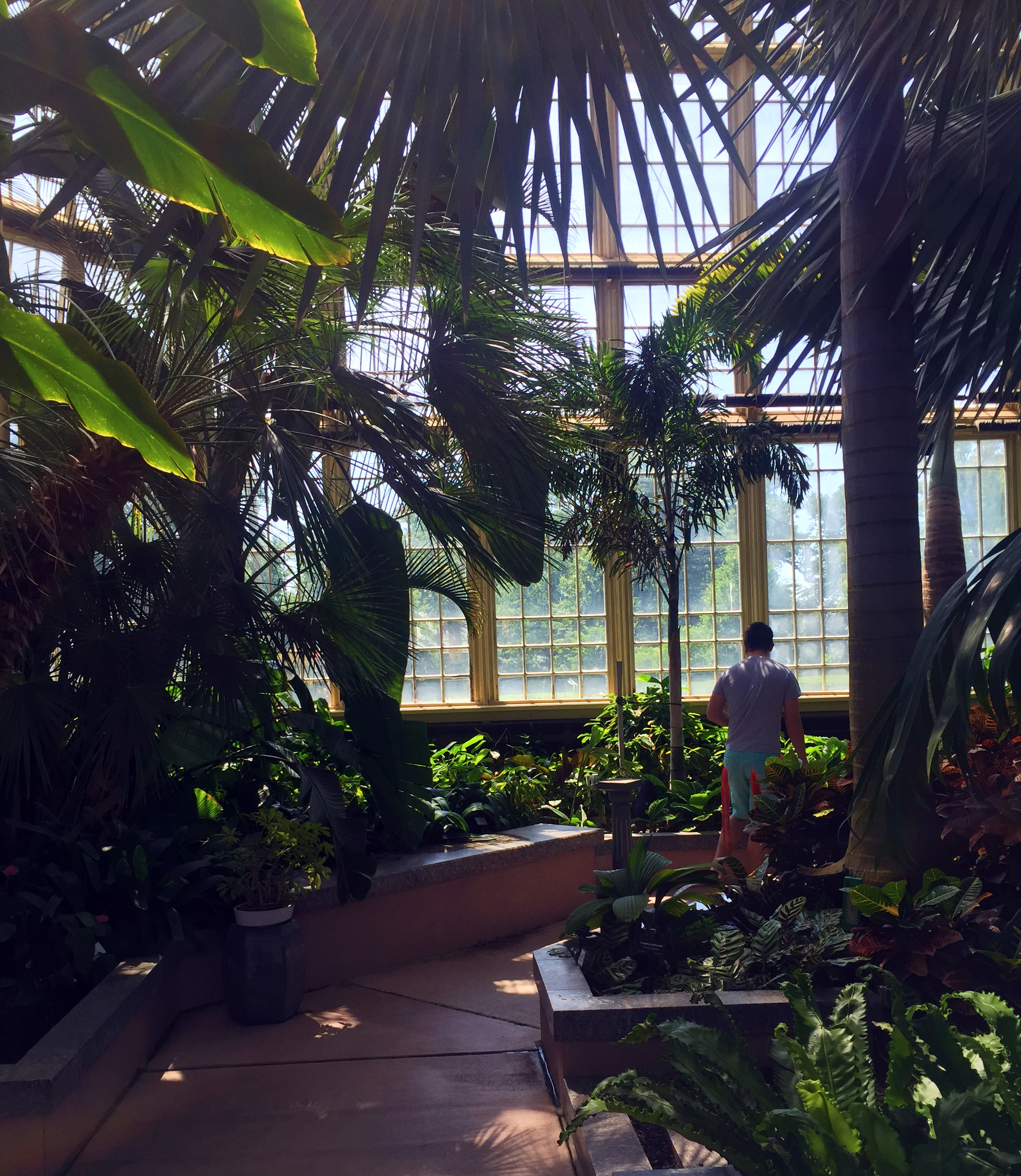 the tropical room was next. it’s the big beautiful glass room in the photo, the original room. it’s full of gigantic palm trees, bright and colorful flowers and leaves that were larger than me.