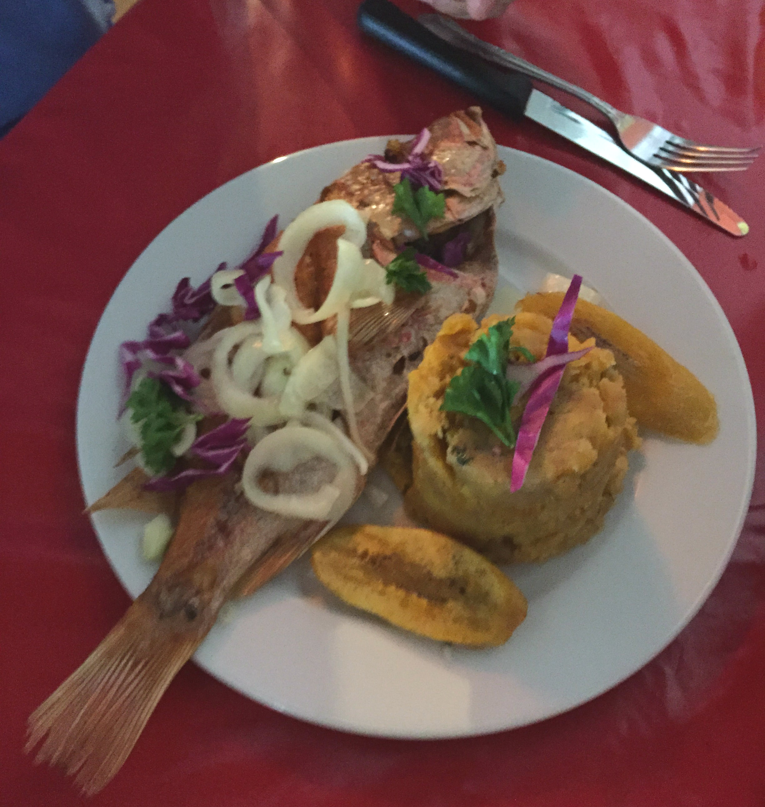 we ate a couple times. the first time, the chef had the most crispy, savory whole fried fish and a giant pile (is that the right word?) of mofongo, the classic puerto rican dish.