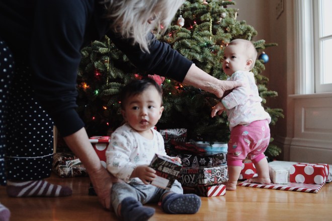 my heart popped watching mila and poh crawl around in front of the tree. it was so precious. their first christmas. such a special time in their teeny tiny lives — and for their parents : )