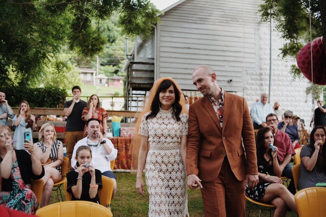 on the ten year anniversary of their first date, lauren and trav walked down the aisle to a small group of their very favorite people playing here comes the bride on kazoos. what in the entire world could be better than that?!